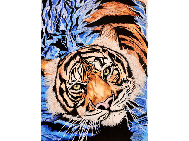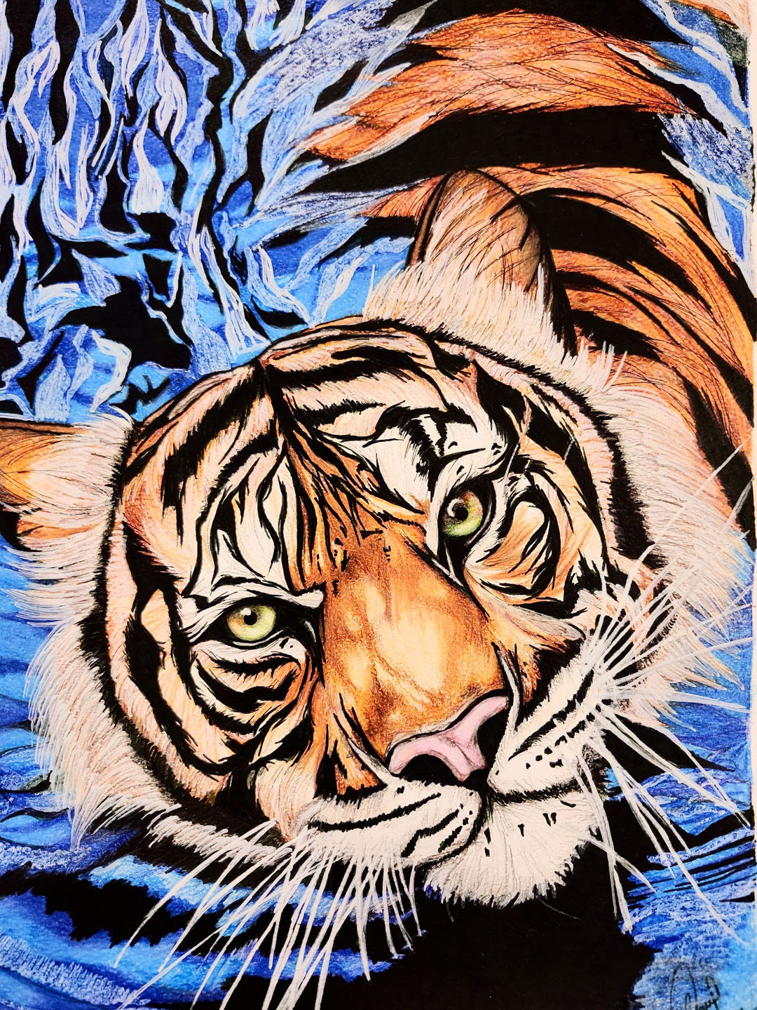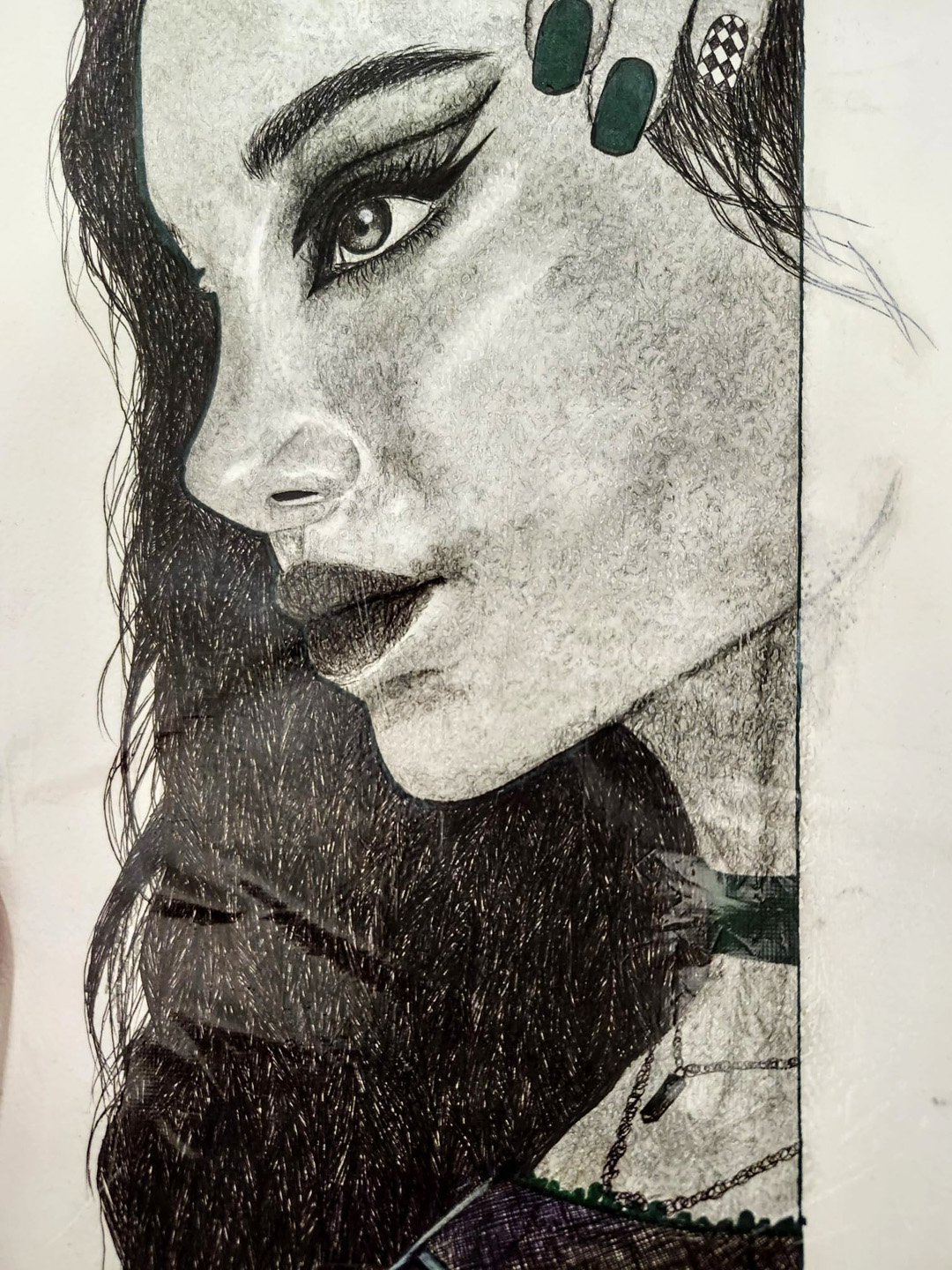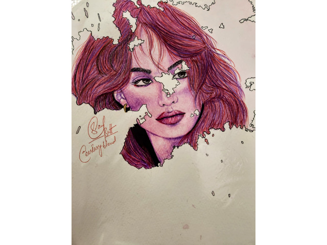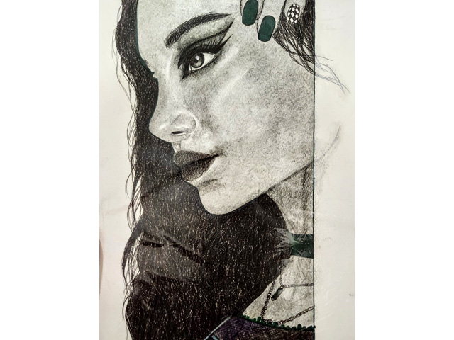 Being from Generation Z, Sana thought: Why not use a medium t hat is underrated and not well recognized by most artists or non-artists, but is a common material among most Generation Z artists? Sana’s work revolves around the use coloured pencils.