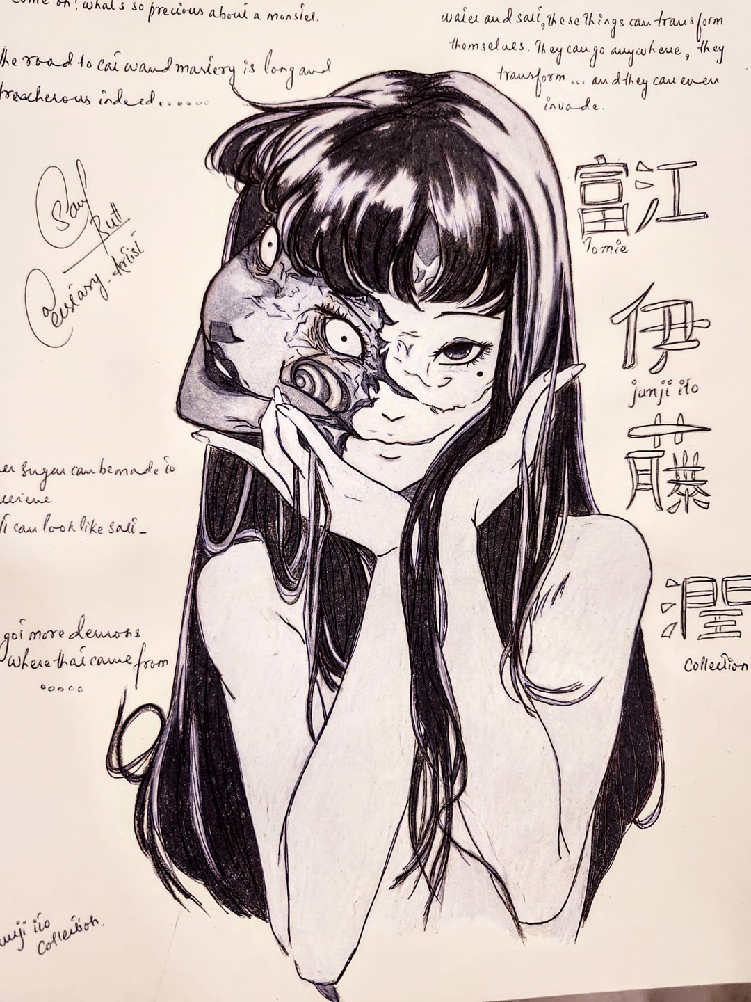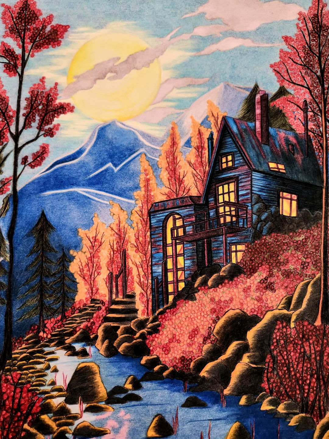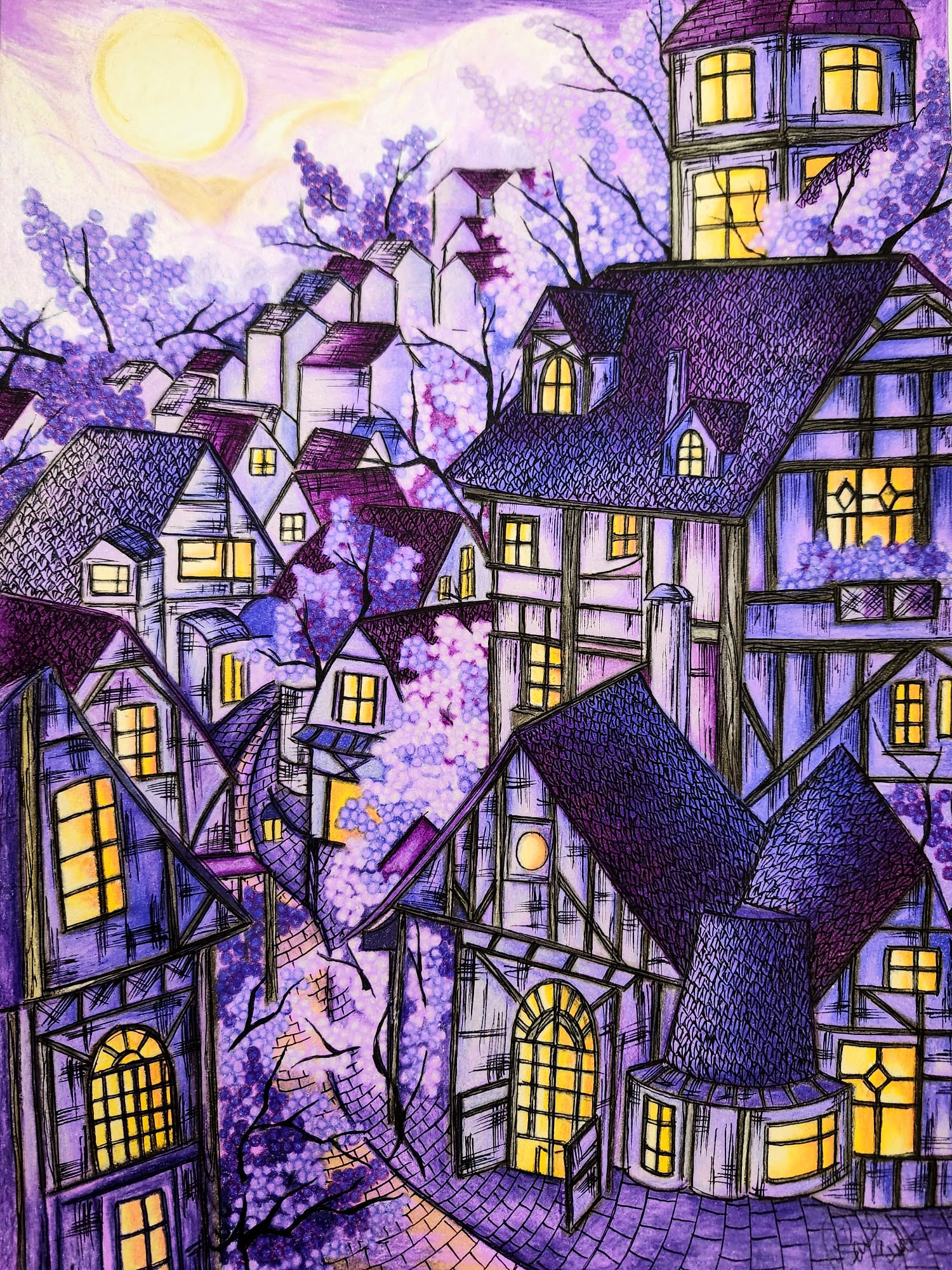 Being from Generation Z, Sana thought: Why not use a medium t hat is underrated and not well recognized by most artists or non-artists, but is a common material among most Generation Z artists? Sana’s work revolves around the use coloured pencils.