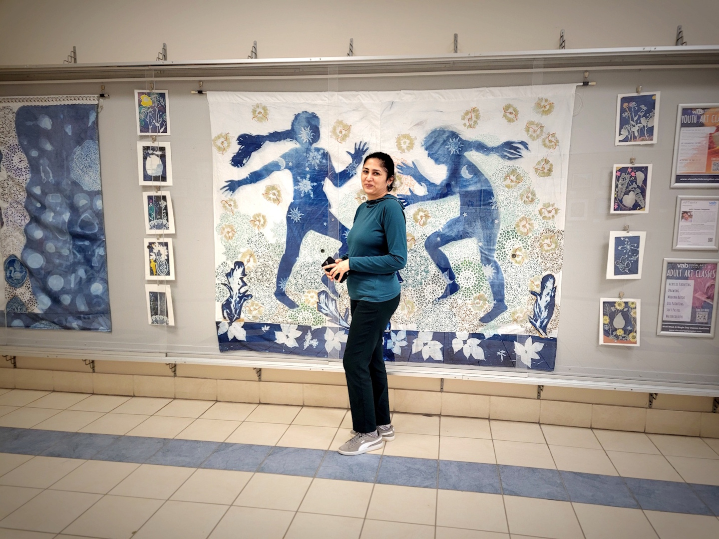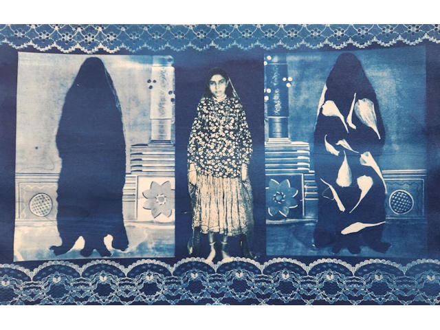 A series of Cyanotype-based works, which celebrate the profound Human connection with Nature, explore childhood adventures and the curious spirit of growth during the early years of development. These works not only celebrate but also reinforce the unity and harmony that exists between humans and the natural world. Cyanotype, one of the initial photographic techniques invented in the 1840s, is a beautiful blend of Art, Science, and History. This series includes mediums like natural dyes, Painting, Applique, photograms, and photographs on fabric and paper.